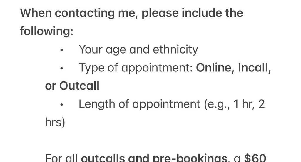 DEPOSIT IS REQUIRED FOR OUTCALL