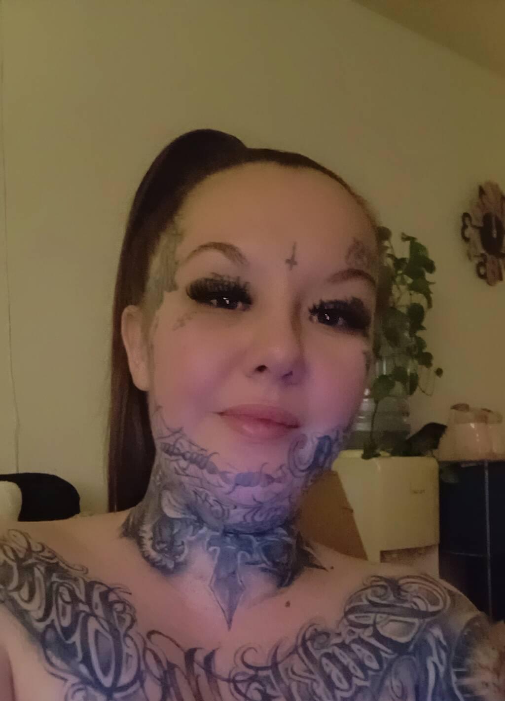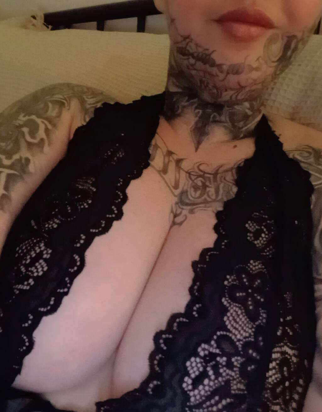 Je suis une québécoise tattouée de 29ans , j'ai de beaux gros seins 36DD naturelle , de belle formes, je mesure 5p3 , 150 lbs et j'ai les cheveux aux fesses